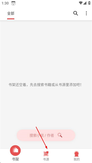 1、在黑貓小說(shuō)首頁(yè),點(diǎn)擊底部書(shū)源選項(xiàng),進(jìn)入書(shū)源頁(yè)面。
