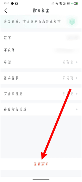 4、在賬號(hào)安全頁面,點(diǎn)擊注銷賬號(hào),進(jìn)入賬號(hào)注銷頁面。