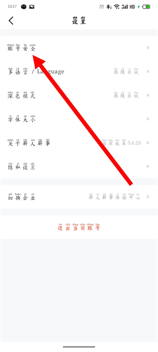 3、在設(shè)置頁面,點(diǎn)擊賬號(hào)安全,進(jìn)入賬號(hào)安全頁面。