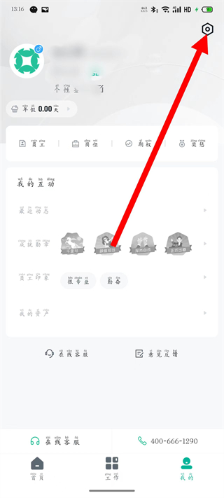 2、在個(gè)人頁面,點(diǎn)擊右上角設(shè)置圖標(biāo),進(jìn)入設(shè)置頁面。