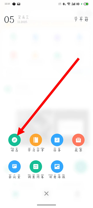 2、在彈出的功能選項中,點擊動態(tài),進入編輯頁面。