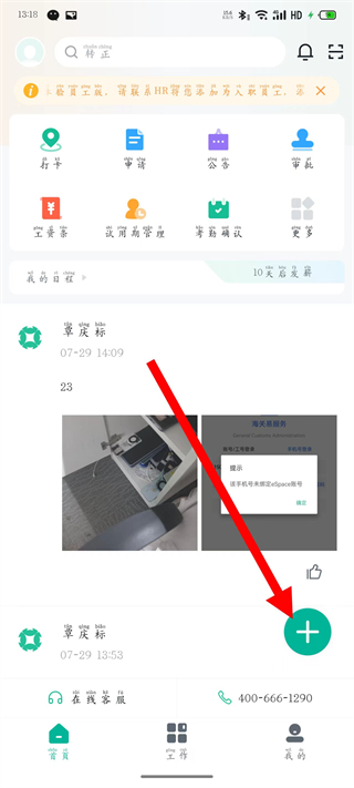 1、打開薪人薪事,點擊首頁右下角的+按鈕。