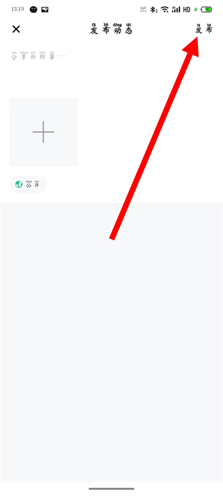 4、完成內(nèi)容編輯后,點擊右上角發(fā)布,即可完成動態(tài)發(fā)布操作。