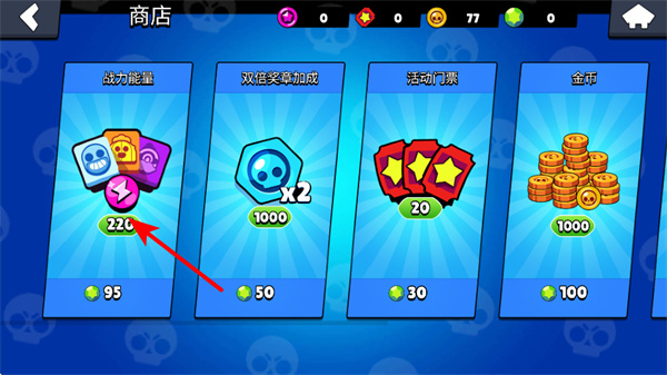 4、在商店購買戰(zhàn)力能量,商店購買是快速獲取資源的重要途徑,消耗寶石購買戰(zhàn)力能量可加速英雄屬性提升,縮短周期。