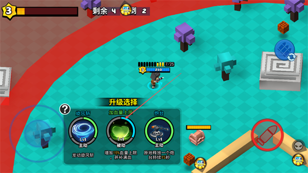 2、選擇旋風(fēng)斬,加血最上限,炮臺(tái)等升級(jí)技能,增強(qiáng)戰(zhàn)斗能力,應(yīng)對(duì)剩余敵人。