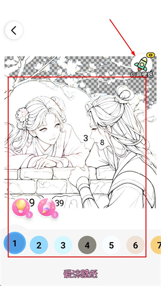 3、在涂色編輯頁面,完成涂色后還點擊應(yīng)用壁紙將其設(shè)置為壁紙。