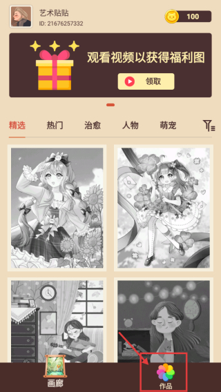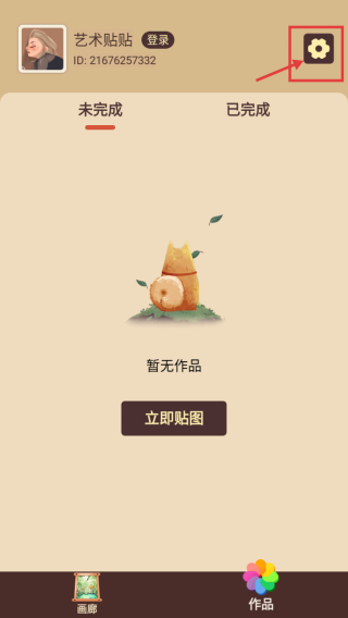 1、打開藝術(shù)貼圖類APP,點擊底部作品選項,進入作品管理頁面。