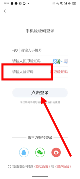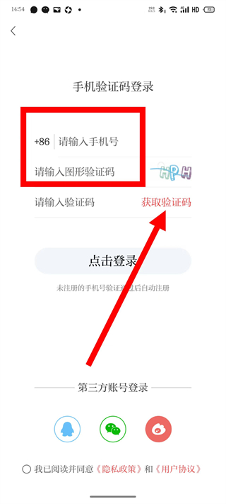 3、在手機(jī)驗(yàn)證碼登錄頁面,輸入手機(jī)號后,點(diǎn)擊獲取驗(yàn)證碼。