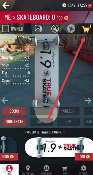 3、滑板編輯界面點擊購物車圖標,進入購物車頁面。