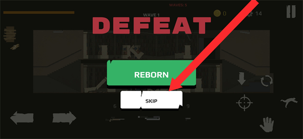 4、如果最后戰(zhàn)斗失敗出現(xiàn)DEFEAT界面,我們需要點擊SKIP跳過重生的流程,重新規(guī)劃策略,繼續(xù)參與僵尸對戰(zhàn)。
