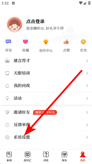 2、在個人頁面,點(diǎn)擊系統(tǒng)設(shè)置選項(xiàng),進(jìn)入設(shè)置頁面。
