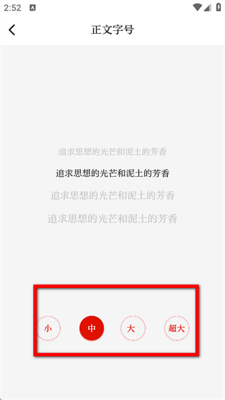 4、在正文字號設(shè)置頁面,選擇想要的字體大小,即可完成字體大小設(shè)置。