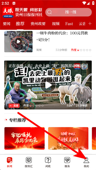 1、在天眼新聞首頁,點(diǎn)擊右下角我的選項(xiàng),進(jìn)入個人頁面。