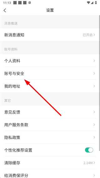 3、在設(shè)置頁面點擊賬號與安全選項,進(jìn)入賬號與安全頁面。