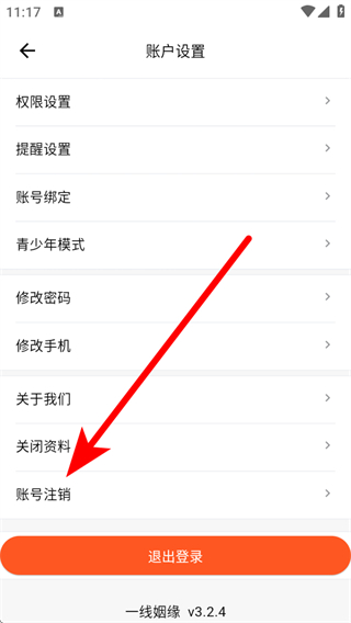2、在賬戶設(shè)置頁面,點擊賬號注銷選項。