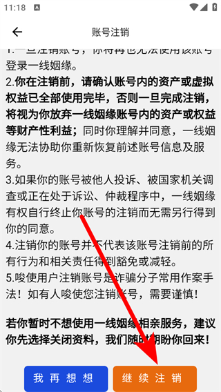 3、在賬號注銷頁面,閱讀注銷須知后點擊繼續(xù)注銷按鈕。
