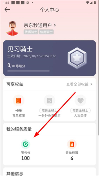 3、在個人中心頁面點擊服務(wù)分選項,進(jìn)入服務(wù)分明細(xì)頁面。
