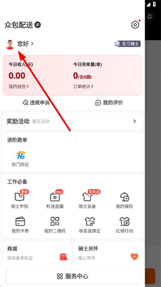 2、在功能列表中點擊頭像區(qū)域,進(jìn)入個人中心頁面。