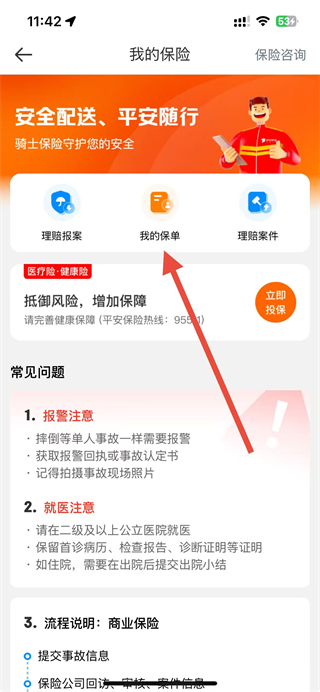 3、在我的保險頁面,點擊我的保單的選項。