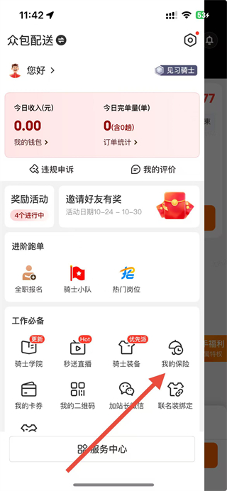 2、在個人頁面點擊我的保險選項,進(jìn)入我的保險頁面。