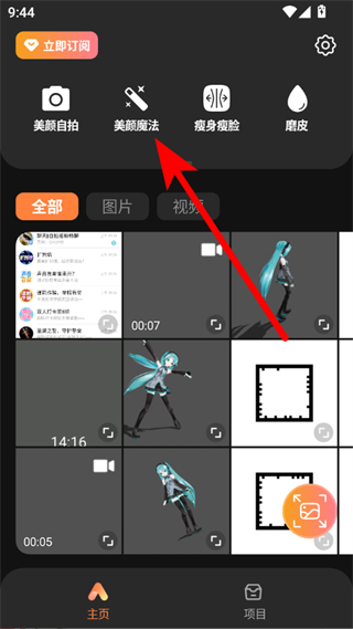 1、打開(kāi)AirBrush APP,點(diǎn)擊美顏魔法選項(xiàng),進(jìn)入圖片選擇頁(yè)面。
