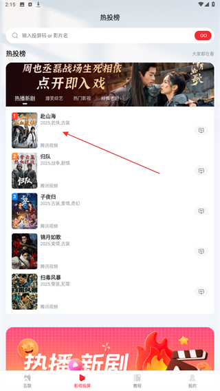 2、進入熱投榜的頁面內,用戶需選擇并點擊影視名稱即可。