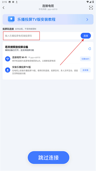 3、進入連接電視的頁面內,輸入投屏電視密碼,再點擊連接即可。