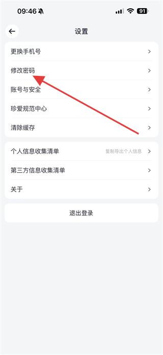 3、在設(shè)置頁面,點(diǎn)擊修改密碼選項(xiàng)。
