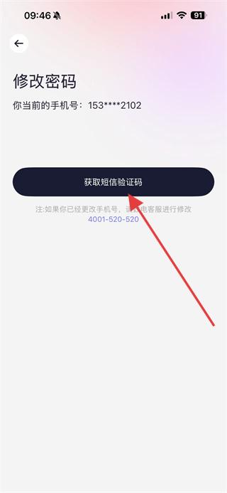 4、在修改密碼頁面,點(diǎn)擊獲取短信驗(yàn)證碼,輸入驗(yàn)證碼后設(shè)置新密碼即可完成修改。