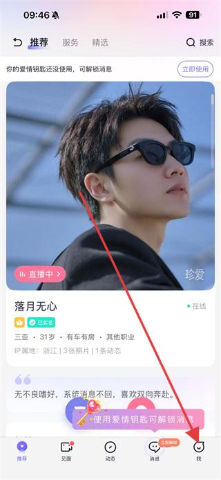 1、打開珍愛網(wǎng)App,點(diǎn)擊底部導(dǎo)航欄中的我進(jìn)入個人頁面。