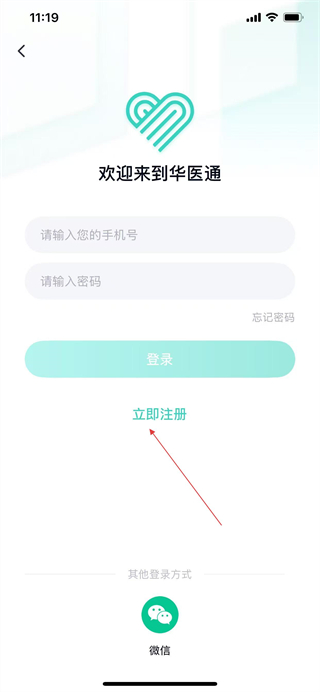 1、打開(kāi)華醫(yī)通APP,點(diǎn)擊底部導(dǎo)航欄中的我的,進(jìn)入個(gè)人頁(yè)面。