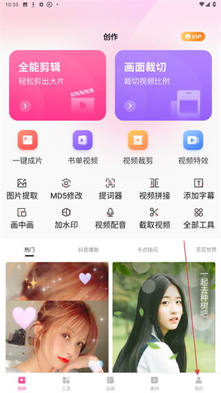 1、打開剪意視頻剪輯APP,在首頁右下角點(diǎn)擊我的圖標(biāo)。