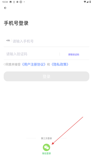 3、進(jìn)入手機(jī)號登錄的頁面內(nèi),點(diǎn)擊下方微信登錄即可。