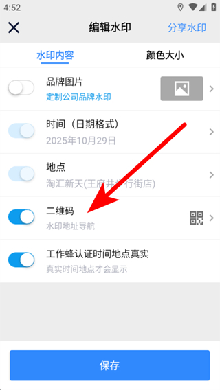 4、關(guān)閉二維碼開關(guān)后,點(diǎn)擊頁面底部的保存按鈕,即可取消水印中的掃碼查看功能。