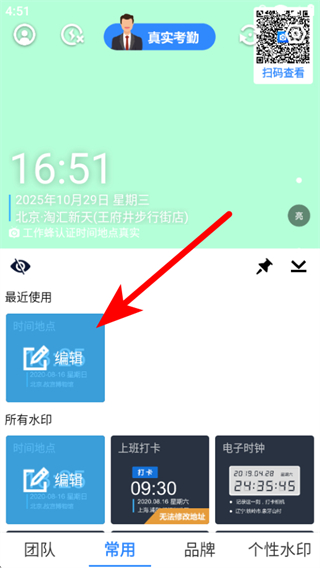2、在水印選擇頁面,點(diǎn)擊時(shí)間地點(diǎn)水印的編輯按鈕。