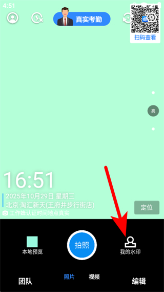 1、打開工作蜂水印相機(jī)應(yīng)用,點(diǎn)擊頁面中的我的水印選項(xiàng)。