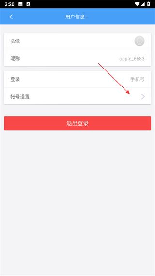 2、在用戶信息頁(yè)面,點(diǎn)擊帳號(hào)設(shè)置選項(xiàng)。
