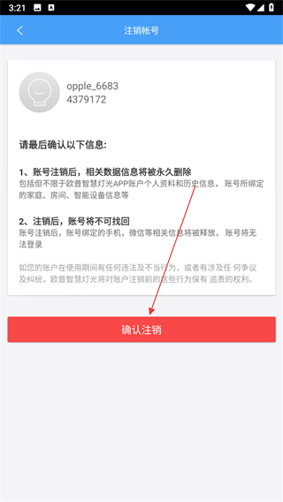 4、在注銷帳號(hào)確認(rèn)頁(yè)面,點(diǎn)擊確認(rèn)注銷按鈕。