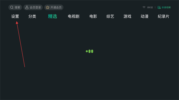 1、打開泰捷視頻的APP,進(jìn)入首頁點(diǎn)擊上方設(shè)置的按鈕。