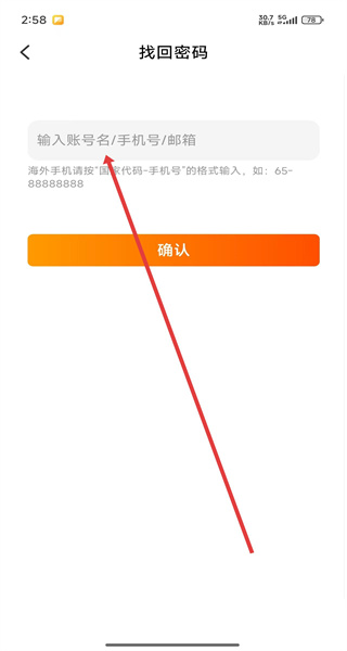 1、在登錄失敗時(shí),可以進(jìn)入找回密碼頁(yè)面,點(diǎn)擊輸入框,填寫(xiě)要賬號(hào)的賬號(hào)信息。