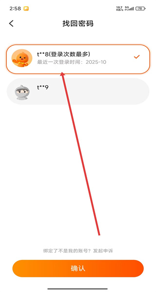 3、可以點(diǎn)擊選擇要找回密碼的賬號(hào),進(jìn)行找回操作。