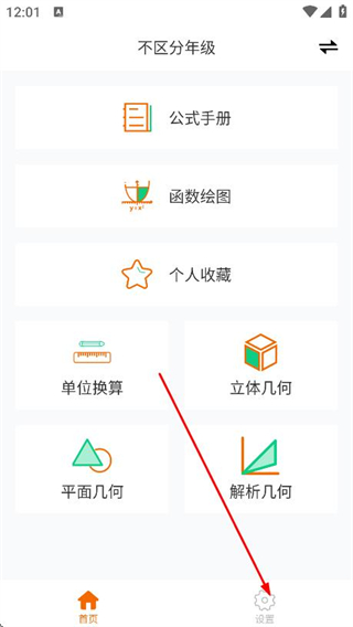 1、打開數(shù)學(xué)公式手冊app,點(diǎn)擊底部導(dǎo)航欄的設(shè)置選項。