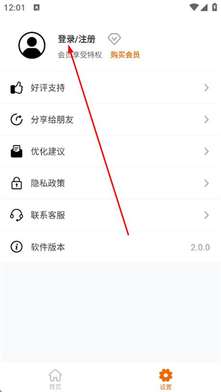 2、在設(shè)置頁面中,找到并點(diǎn)擊上方的登錄/注冊區(qū)域。