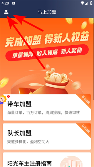 1、打開陽光車主APP,點(diǎn)擊左上角的個(gè)人圖標(biāo),進(jìn)入個(gè)人中心。