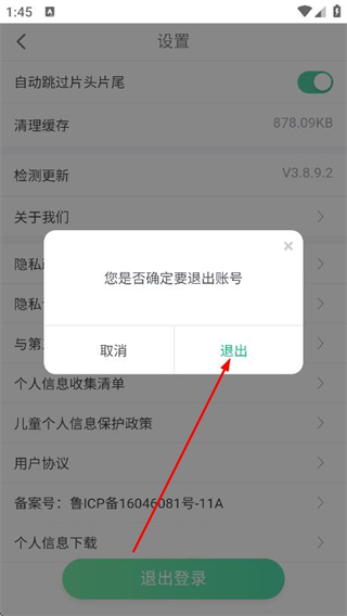 4、在彈出的提示框中,點(diǎn)擊退出,即可退出登錄。