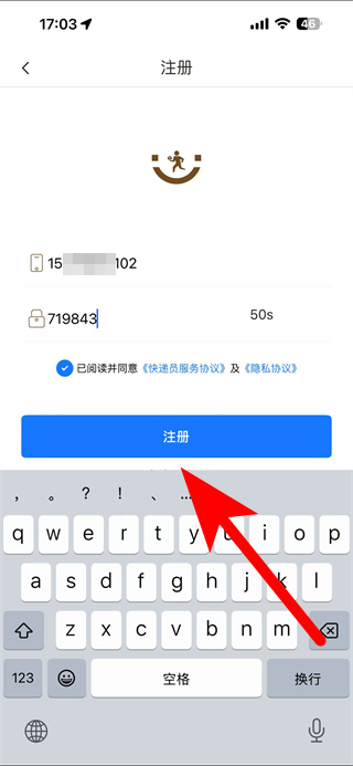 3、輸入收到的短信驗(yàn)證碼,勾選已閱讀并同意相關(guān)協(xié)議。