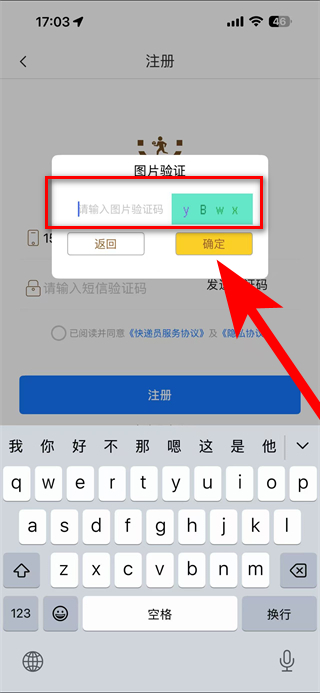 2、在注冊(cè)界面輸入手機(jī)號(hào)碼,點(diǎn)擊發(fā)送驗(yàn)證碼,完成圖片驗(yàn)證如輸入yBwx后點(diǎn)擊確定。