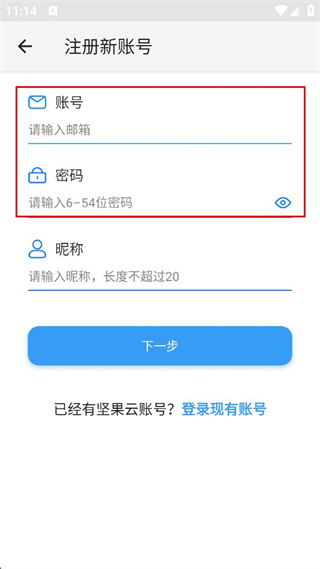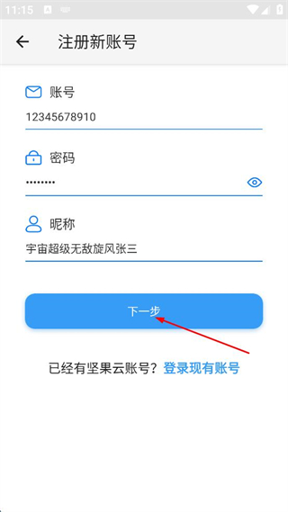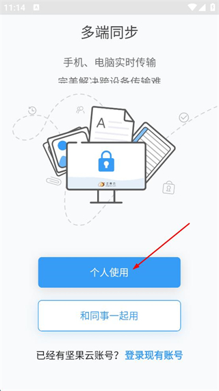 1、打開堅果云APP,點擊“個人使用”進入注冊流程。