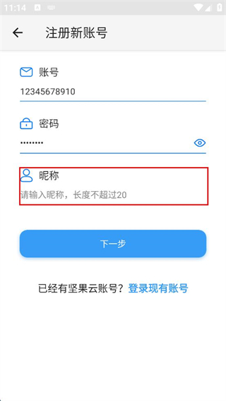 3、輸入不超過20字的昵稱。