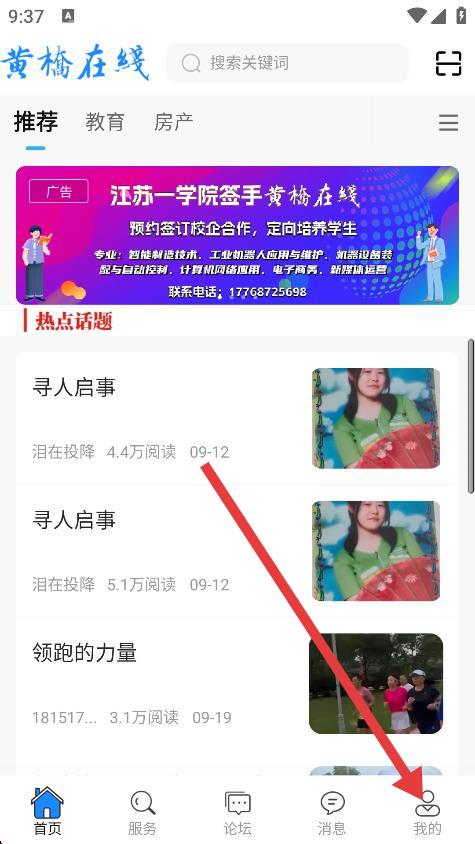 1、打開黃橋在線,點(diǎn)擊底部導(dǎo)航欄我的,進(jìn)入個(gè)人頁面。